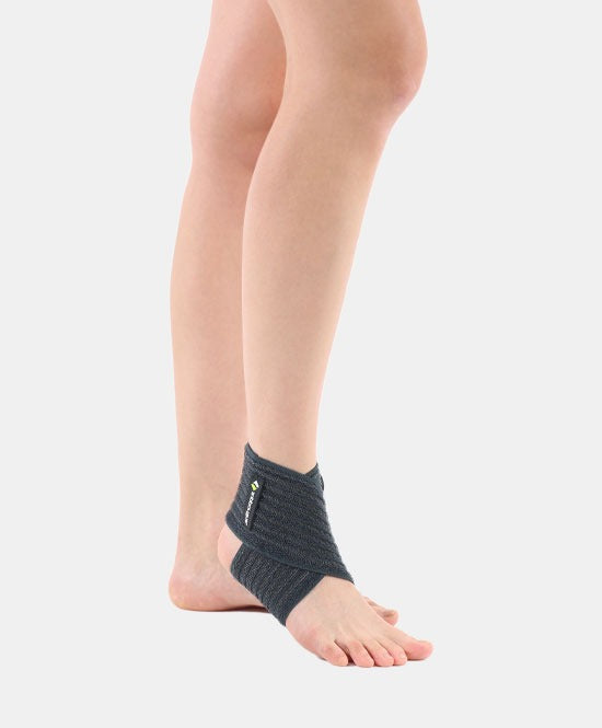 رباط كاحل مرن قابل للتنفس ومضاد للحساسية، يُلفّ بطريقة شكل 8 ليمنح ضغطًا متوازنًا ودعمًا للكاحل ويساعد على تقليل التورّم وتسريع العودة للنشاط.