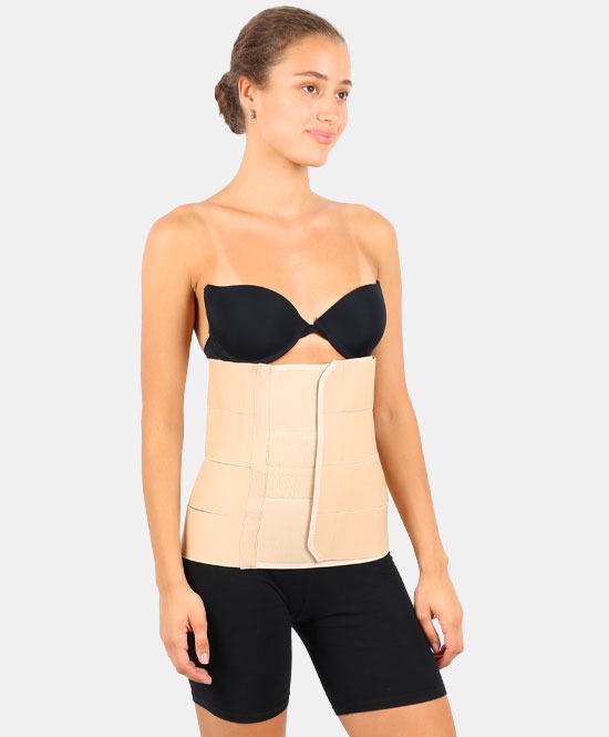 كورسية ضغط 4 لوحات مرنة لتأمين كبس متجانس بعد شدّ البطن والليبوسكشن، مع قابلية ضبط واسعة عبر الأشرطة.