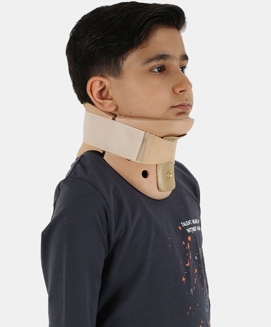 ياقة مكوّنة من قطعتين من رغوة Plastozote بسماكة 12 مم لتقييد شبه كامل لحركة العنق وتوفير ثبات مرتفع خلال التعافي.