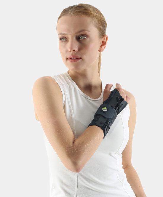 دعامة معصم قابلة للتنفس بواجهة شبكية تمنح تثبيتًا في الوضعية الحيادية وتقليلًا للحركة الزائدة. يوفّر حزام إضافي محيطي دعمًا أعلى حول المفصل، بينما تسمح الرباطات القابلة للشدّ بضبط سريع ودقيق لدرجة الإحكام وملاءمة مريحة للاستخدام اليومي.