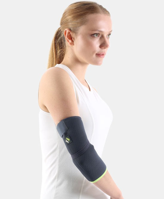 دعامة كوع مصنوعة من مادة النيوبرين وقابلة للاستخدام على اليد اليمنى أو اليسرى. توفّر حرارة وضغطًا متدرّجين يساعدان على تخفيف الإحساس بالألم وتسريع عملية التعافي، مع تصميم يتوافق تشريحيًا مع مفصل الكوع لراحة يومية أثناء الحركة أو الراحة.