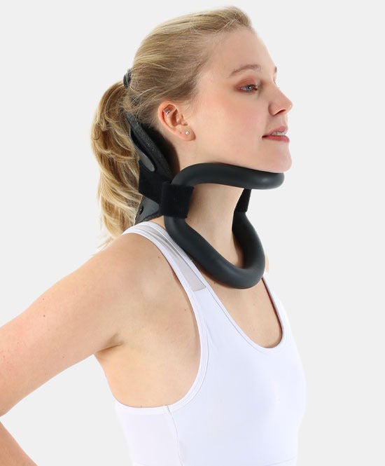 دعامة خفيفة ثنائية القطعة بواجهة إسفنجية مريحة وداخل من سلك ألومنيوم قابل للتشكيل ليتوافق مع انحناءة العنق ويُثبّت الوضعية المطلوبة. تسمح البنية السلكية بضبط زاوية الانثناء أو التمدّد بدقّة، كما يوفّر التصميم المفتوح تهوية أفضل ويقلّل الانزعاج المرتبط بالحرارة والتعرّق أثناء الاستخدام اليومي.
