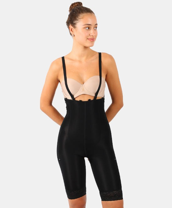 يُستخدم بعد شفط البطن والخصر والأرداف وأعلى الفخذ. نظام السحاب مع ضبط الكبس يدعم التعافي، وحمّالات كتف قابلة للضبط تمنع الانزلاق.