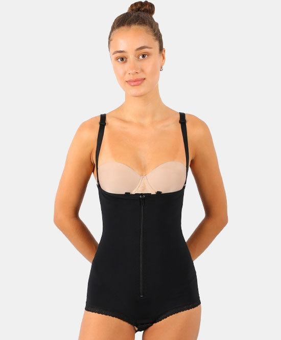 لباس ضغط يُستخدم بعد شفط البطن والخصر والظهر. نظام 3 صفوف كُلاب لتعديل مستوى الضغط، وأحزمة كتف رفيعة غير ظاهرة تحت الملابس، مع دعم للظهر.