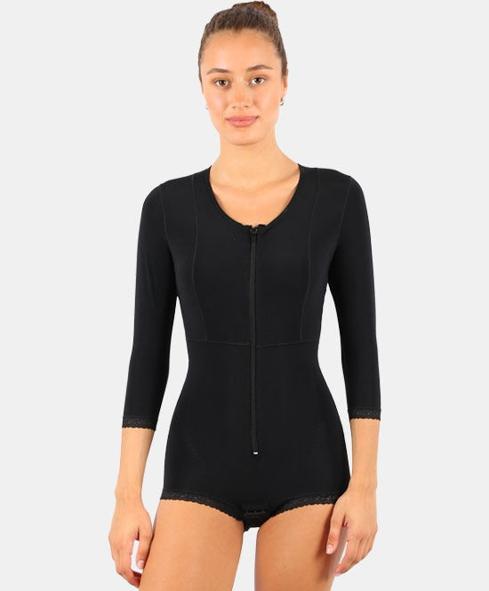 لباس ضغط يغطي الذراعين والثدي والبطن والمؤخرة والظهر بعد العمليات. مزوّد بنظام كبّاسات (Snap) وسحاب، ومنطقة عناية تناسلية بخطّافات.